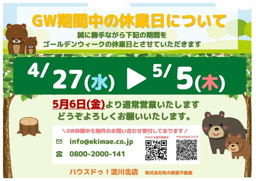 GWの休業日とさせて頂いております🎏