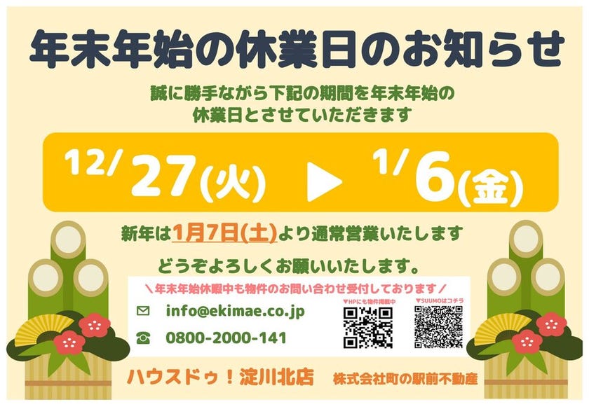 ※休業期間中にいただいたメールでのご相談については、営業開始日以降に順次回答させていただきます。